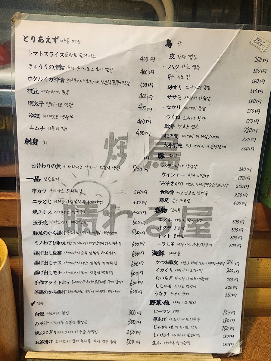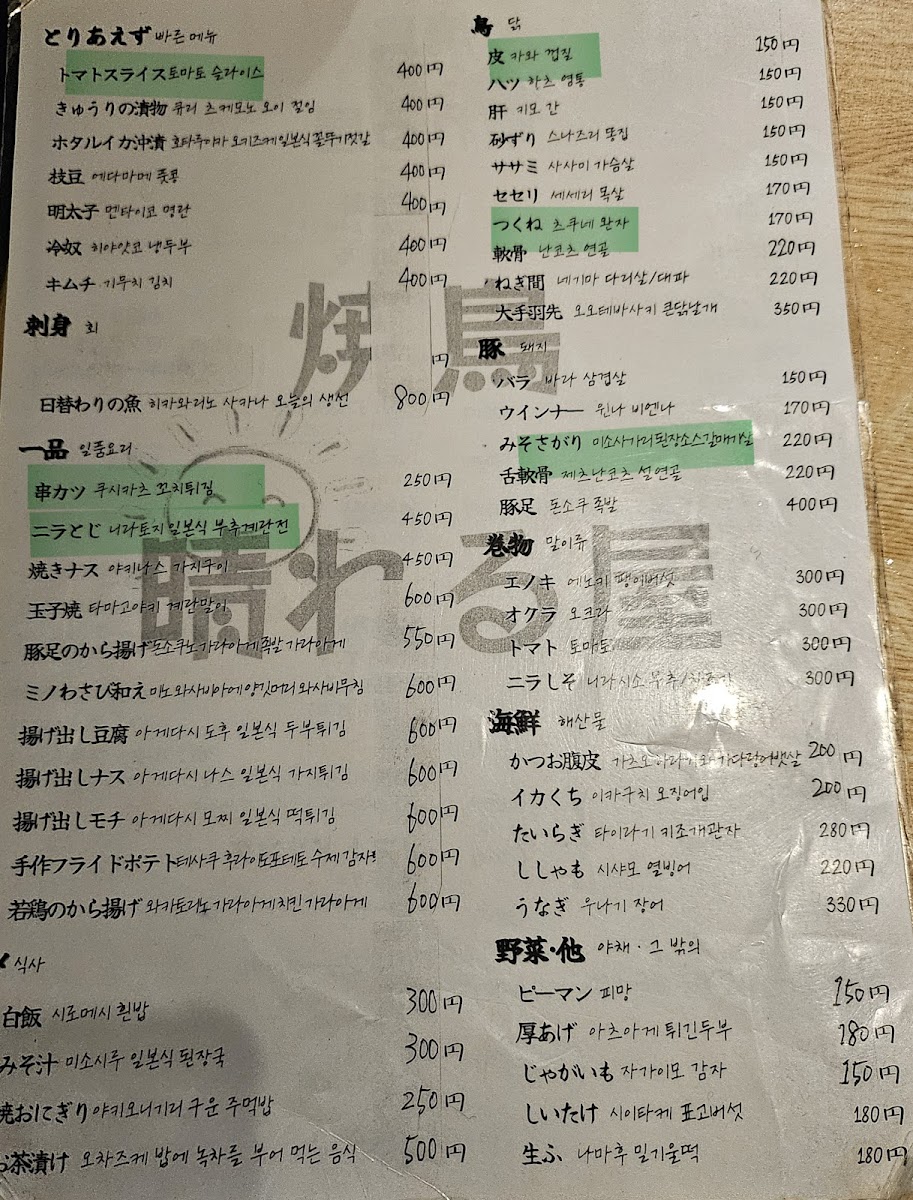 Yakitori Hareruya Menu